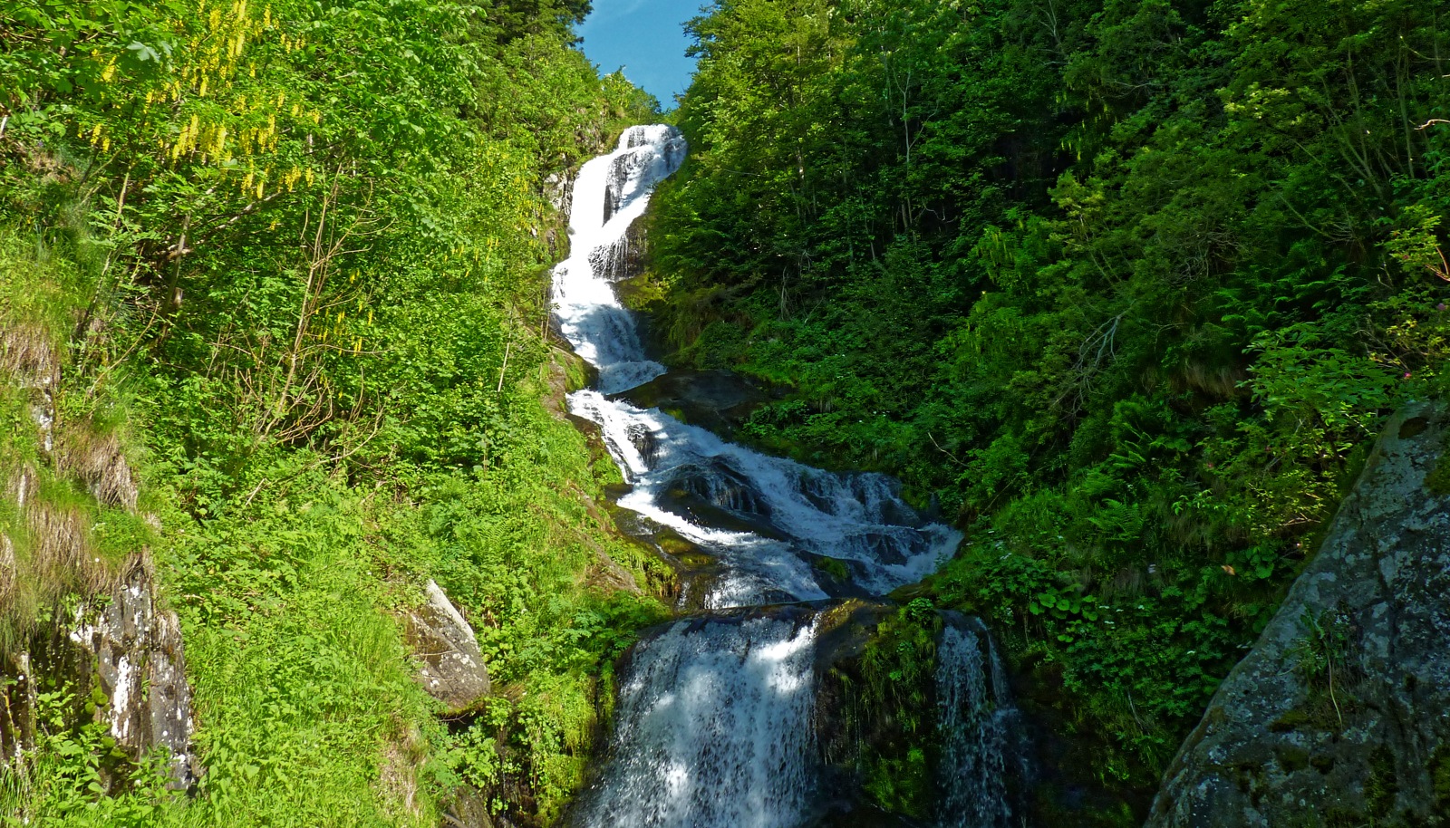 Se non si è troppo stanchi, si può effettuare un anellino tra le cascate, breve ma ripido. Si ripercorre per pochi metri la militare facendo il guado di grosse pietre sul rio di Sestrera e prima del successivo ponte si va a sinistra (cartello), sul sentierino che sale a gradoni e brevi svolte fino a un terrazzo da cui si ammira la cascata del Sàut