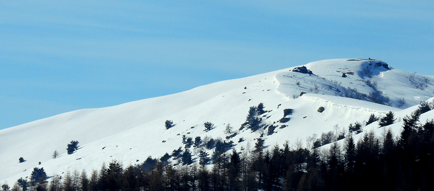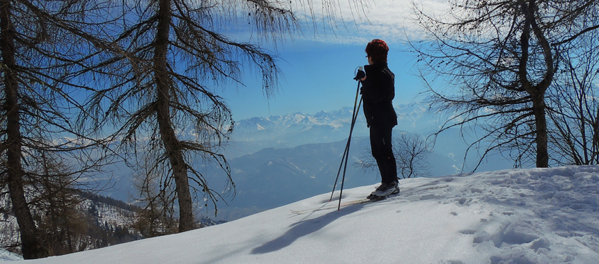 La montagna simbolo della regione Piemonte, il Viso è li di fronte con il versante sud inafferrabile, a contrapporsi al sacro del santuario di Valmala. Un nome che è tutto un programma per una valla laterale del Varaita dove la vita non era certo facile e che date le scarse risorse disponibili fu luogo di massiccia emigrazione. Poco più in la è il Roccerè, cocuzzolo roccioso che con le sue 20.000 coppelle attende ancora una intepretazione certa. Il Monte San Bernardo guarda verso il basso, a Villar San Costanzo in Val Maira, con la sua riserva naturale che tutela le bizzarre formazioni rocciose note come i Ciciu. Non più funzionante e abbandonata la vecchia sciovia a ricordare una stagione in cui lo sviluppo turistico era quello di investire in impianti e in seconde case, invasa dagli ontani quella che era la pista da discesa, la zona del Santuario di Valmala, situata a crica 6 km dalle poche case che costituiscono il capoluogo comunale, è un apprezzato centro anche se non troppo conosciuto fuori dall'ambito locale di sci di fondo, ciaspole e sci-alpinismo. L'esposizione e la quota, si sale sino a 1.700 metri, garantiscono un buon innevamento anche negli inverni meno favorevoli. Il problema maggiore è dato dalla carrozzabile di accesso ampia ma che in alto attraversa alcuni ombrosi canaloni dove il fondo ghiacciato e la pendenza possono creare qualche problema.